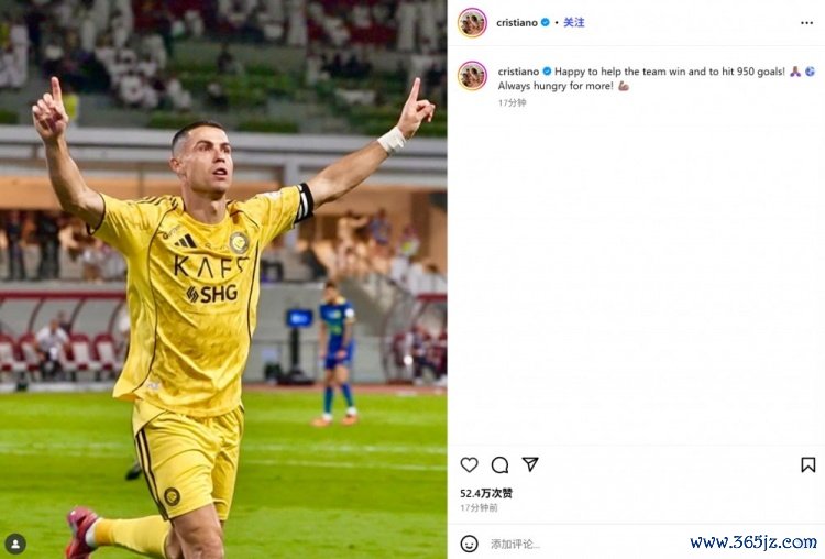 C罗社媒晒庆祝照:很情状匡助球队得胜并末端950球里程碑!