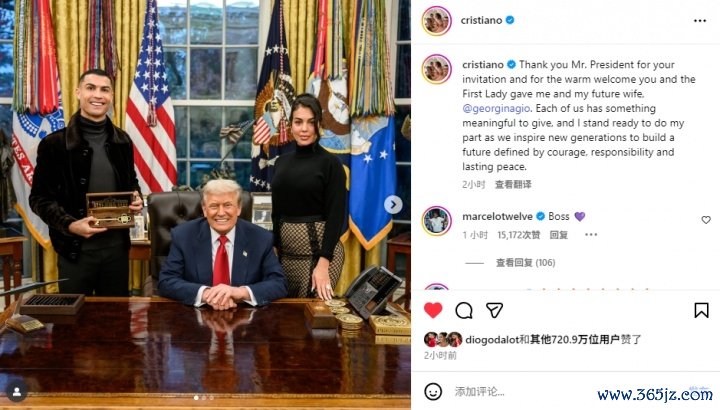 影响力这一块!C罗社媒致谢特朗普动态发布2小时已获利720万点赞