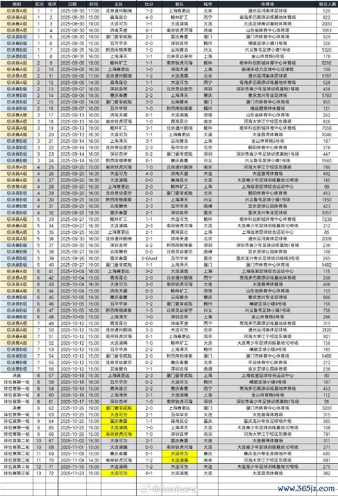 2025中冠联赛闭幕,厦门壹零贰陆、上海赛更达、大连可为取得升乙经历,另一个限额将在联赛殿军大连涵瑀和U21联赛冠军之间决出。本年中冠共进行了大区赛158场+附加赛4场+总决赛72场=234场比赛,现场不雅众总东谈主数为151354东谈主次,其中总决赛阶段69225东谈主次。