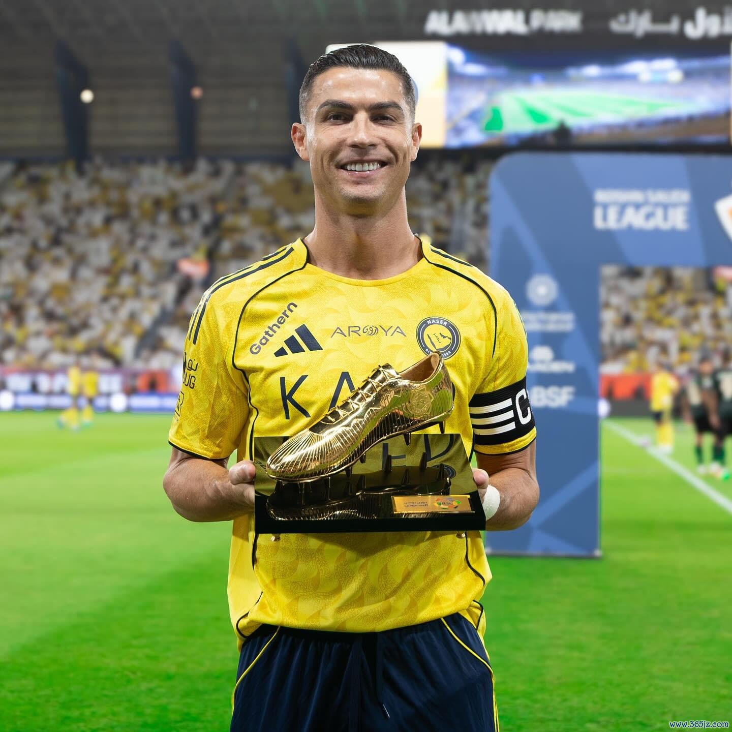 C罗已连结2个赛季获取沙特联赛的金靴,在2023/24赛季联赛中打入35粒进球,2024/25赛季打入25球。奖项由利雅得得手的外传队长兼历史弓手王马吉德-阿卜杜拉颁发