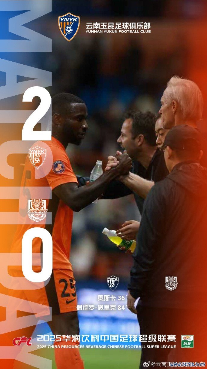 2025华润贵寓中超联赛第27轮,凭借奥斯卡与恩里克的进球,云南玉昆以2比0打败敌手,完成对天津津门虎赛季双杀。上半场比赛,敌手禁区内手球犯规,主裁判吹罚点球,奥斯卡操刀主罚掷中,将个东说念主中超赛季进球记载刷新到9个。下半场,替补出场的恩里克接约尼查的角球助攻破门。