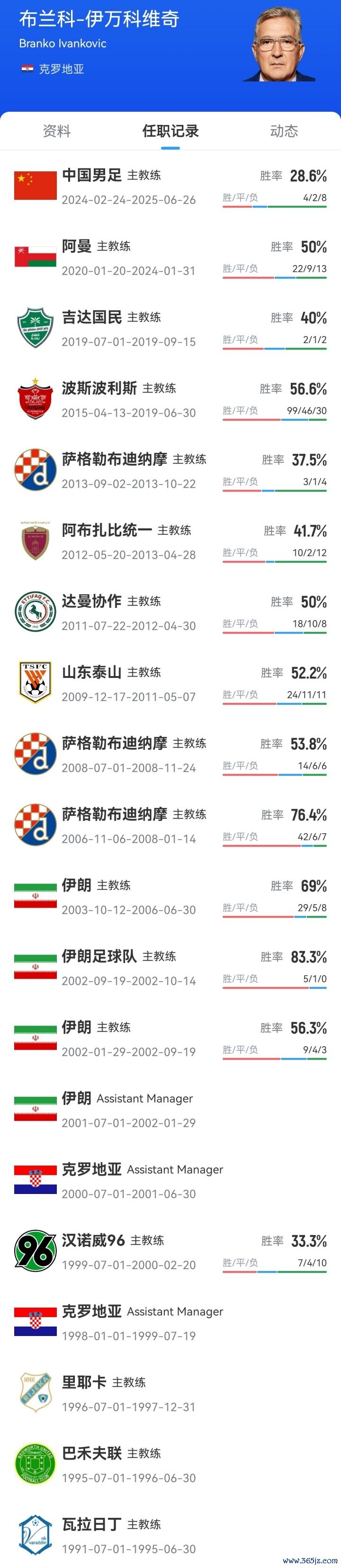 伊万科维奇照旧先后握教里耶卡、克罗地亚(助教)、汉诺威96、伊朗、萨格勒布迪纳摩、山东泰山、波斯波利斯等队,曾率伊朗难得2006年寰球杯。