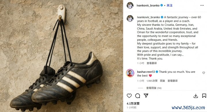 10月30日讯 71岁前国足主帅伊万科维奇在社媒发文,崇拜晓喻退休,他默示我方以球员和素养身份疾驰足坛逾六十载,是本领该别足坛了。