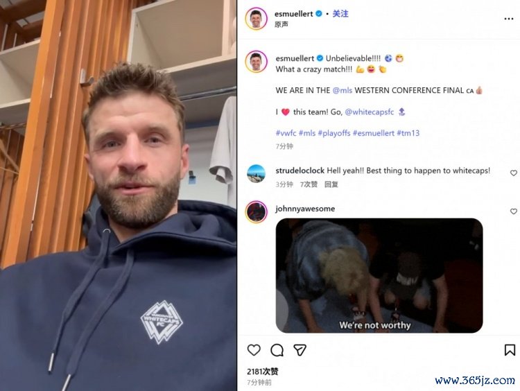 穆勒社媒庆祝温哥华白浪晋级:难以置信,咱们打进西部决赛了!