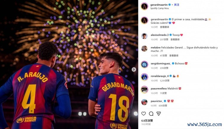 客串中卫推崇出色!赫拉德·马丁晒烟花照:难以忘怀的诺坎普首秀