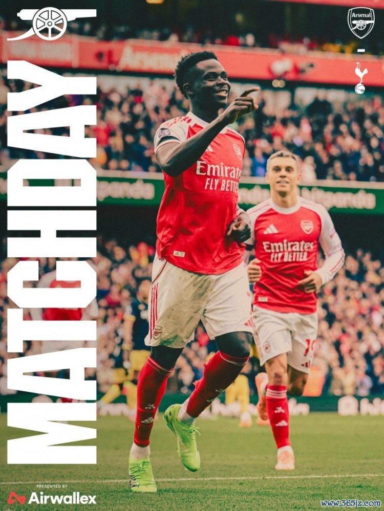 阿森纳官方社媒晒出北伦敦德比海报,萨卡、特罗萨德出镜。