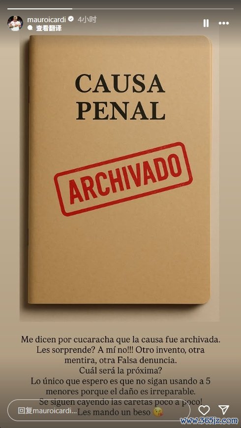 本日,伊卡尔迪更新社媒回报,他晒出一张附有“刑事案件 已了案”字样的图片,并配文:“又是一次抓造,又是一个坏话,又是一桩歪曲。”