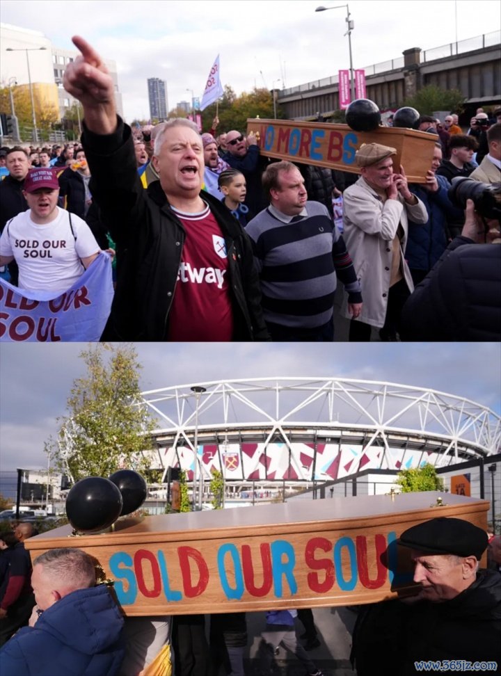 太阳报:发火俱乐部统共者,西汉姆联球迷抬棺抗议