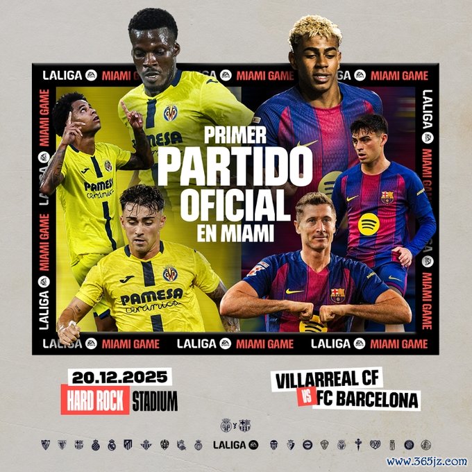 10月09日讯 西班牙甲级联赛官方文牍,2025-26赛季西甲EA体育联赛第17轮比利亚雷亚尔对阵巴塞罗那的比赛将于2025年12月20日在好意思国佛罗里达州迈阿密市的硬石通顺场举行。